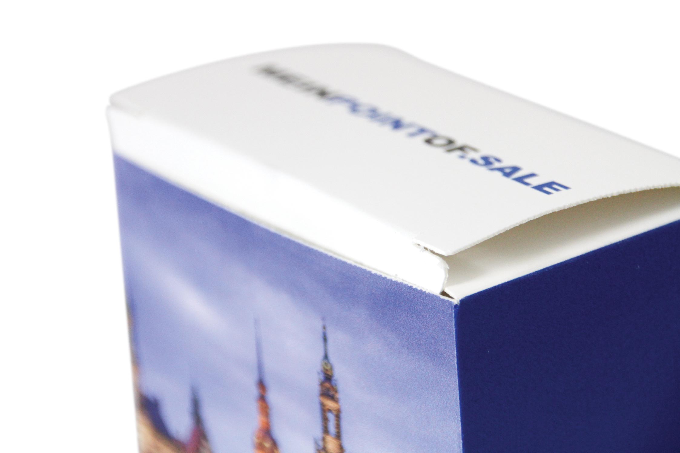 Im Einzelhandel unverzichtbar. Diese Schachtel ist als Produktverpackung kaum wegzudenken. Gleichzeitig werden viele Ladenflächen mit diesen 3-dimensionalen Würfeln oder Loseboxen ausgestattet. Sie haben vielseitige Möglichkeiten Werbebotschaften anzubringen. Verkaufserfolg garantiert!