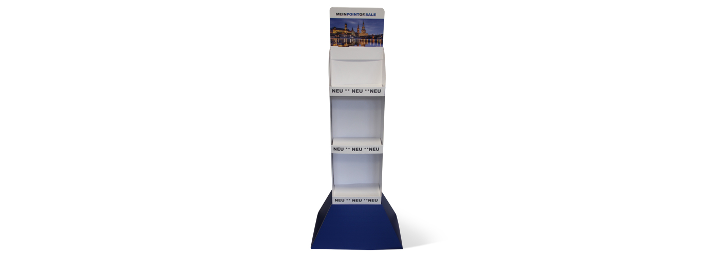 Wir drucken Ihren Chep-Display mit 3 Regalen speziell nach Ihren Wünschen!