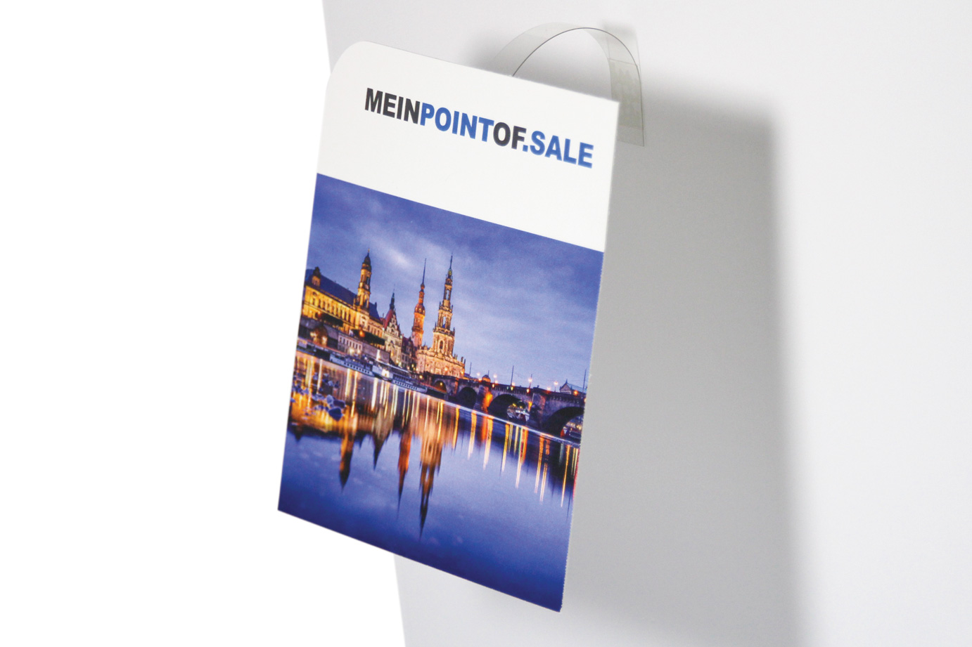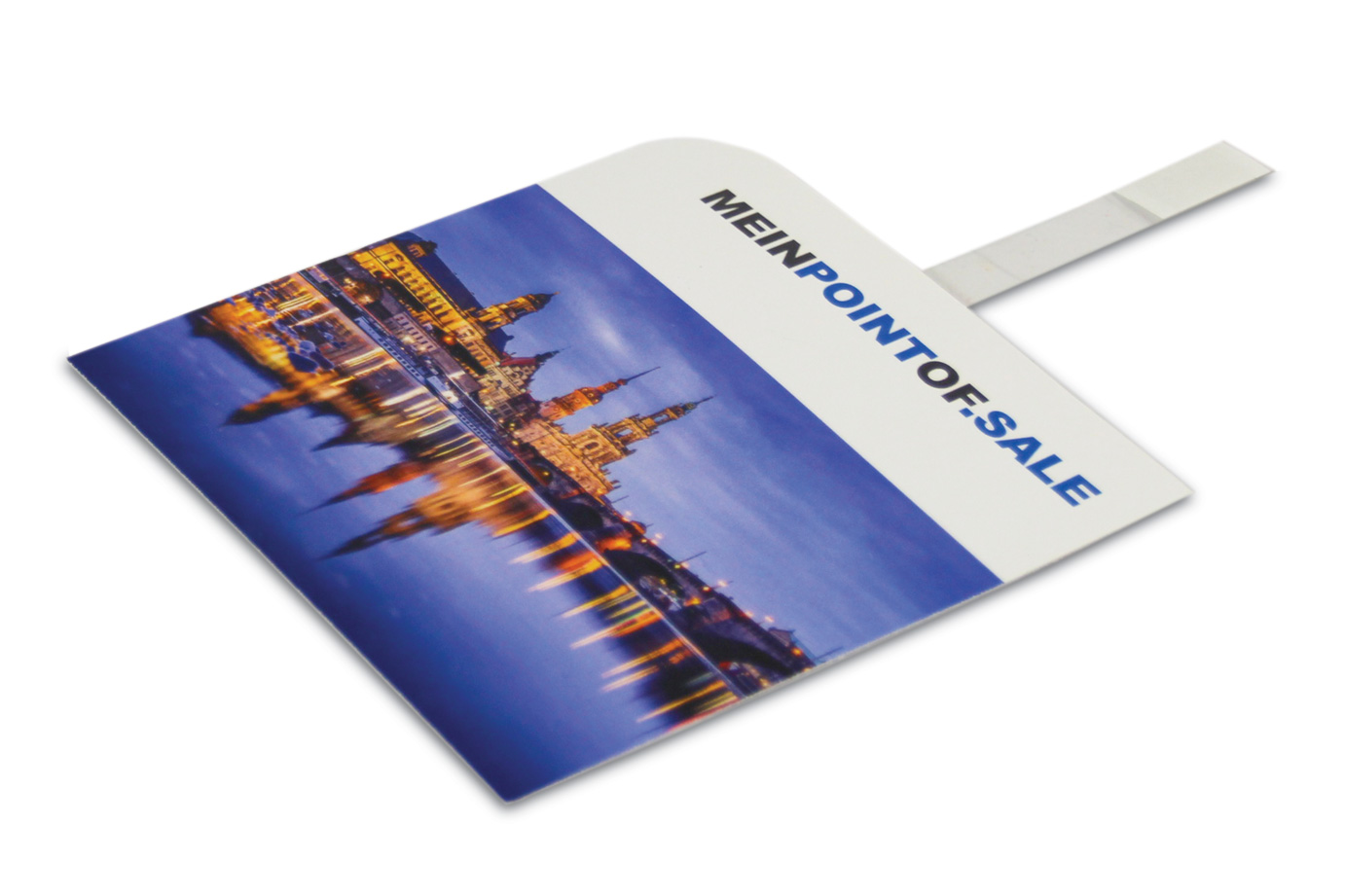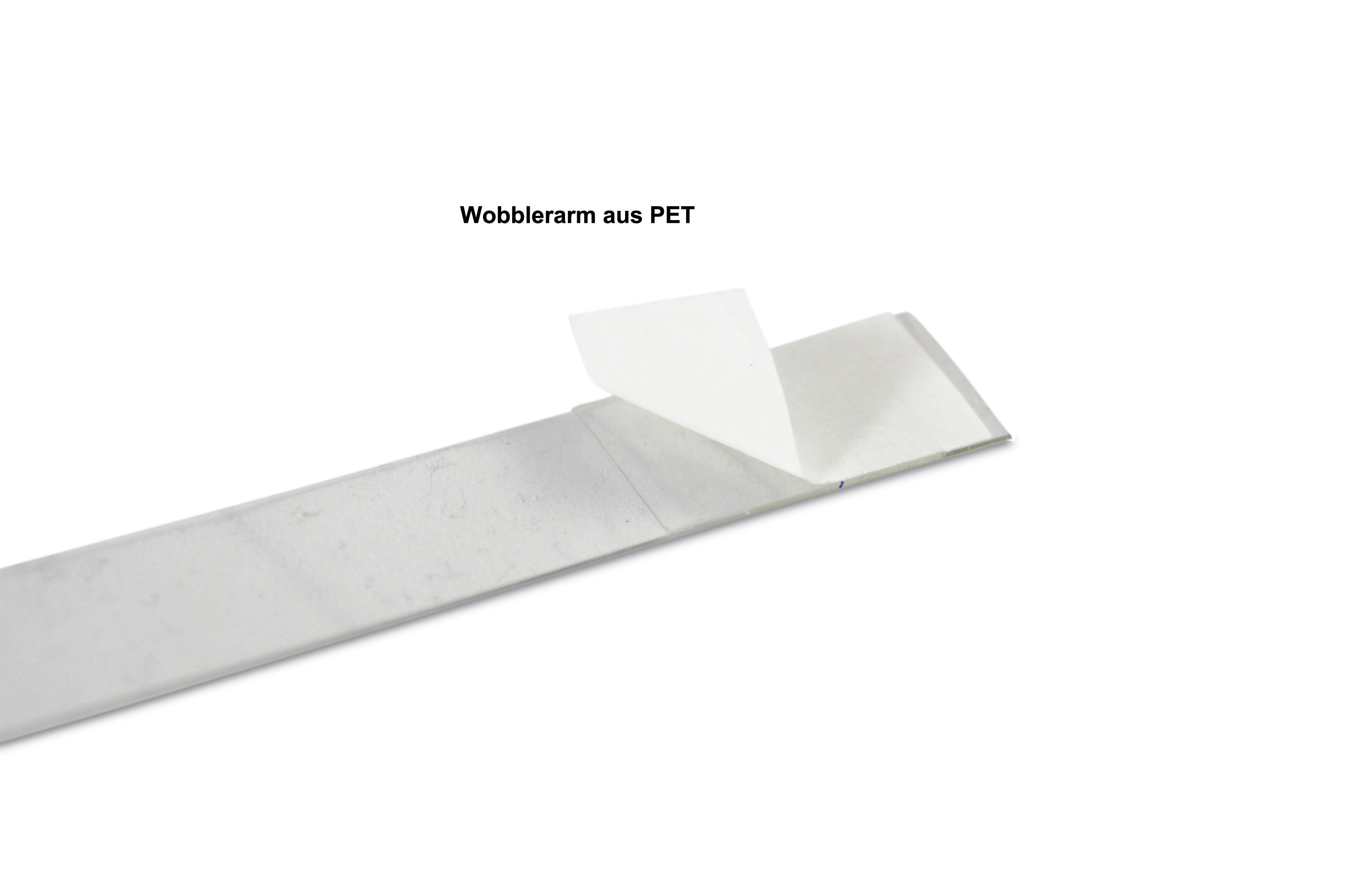Wir übernehmen die Konfektion für Sie und befestigen den Wobblerarm aus PET bereits mittig rückseitig an die Karte.
