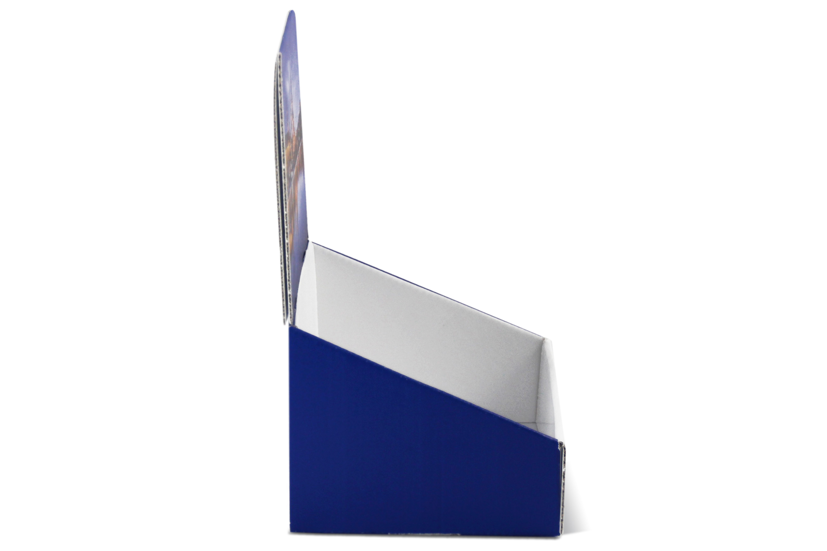 Optional können Sie auch eine individuell angepasste Bodeneinlage bestellen. Da der Display einseitig bedruckt wird, bleibt die Bodenfläche innen weiß. Um diese Fläche ebenfalls mit einem Druckbild zu gestalten, können Sie eine passende, bedruckte Bodeneinlage bestellen. Sie können zudem eine individuelle und bedruckte Treppe oder einen Flyerdispenser einbringen. Beim Erstellen der Stanzkontur für Sie werden wir mit Ihnen die Produktgrößen besprechen und die Treppe oder den Flyerdispenser auf Ihre Bedürfnisse konstruieren. Auf Wunsch richten wir die Aufsteller auf, bestücken diese mit Ihrer Ware und verpacken diese mit dem entsprechenden Transportschutz. Gerne lagern wir Ihre Aufsteller ein und versenden diese stückweise oder gleich palettenweise an Ihre Verkaufsstandorte. Ferner können Sie eine angepasste braune Transportverpackung pro Thekendisplay dazu bestellen. Ihr Thekendisplay passt perfekt in die postalische Umverpackung. Die Verpackung wird separat flachliegend mitgeliefert. Sie können uns zudem beauftragen Ihr Thekendisplay in die postalische Umverpackung zu packen. Hier wird Ihr Thekendisplay in die passgenaue Umverpackung gesteckt und zugeklebt.