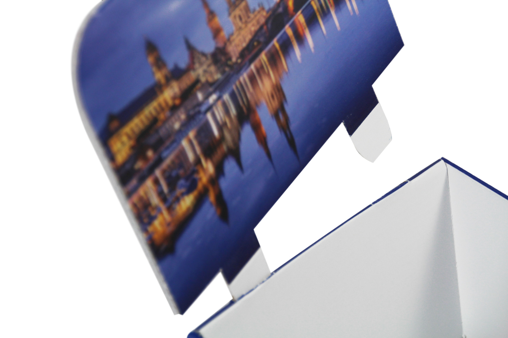 Topper: Das Top-Bild wird gefalzt und in die Schütte eingesteckt, das Druckbild erscheint vorne und hinten. Es ist so hoch, wie die Schütte tief minus 2 cm. Sie wünsche eine abweichende Höhe? Kein Problem. Dies setzt unsere Konstruktionsabteilung für sie gegen mehr Aufwand um.