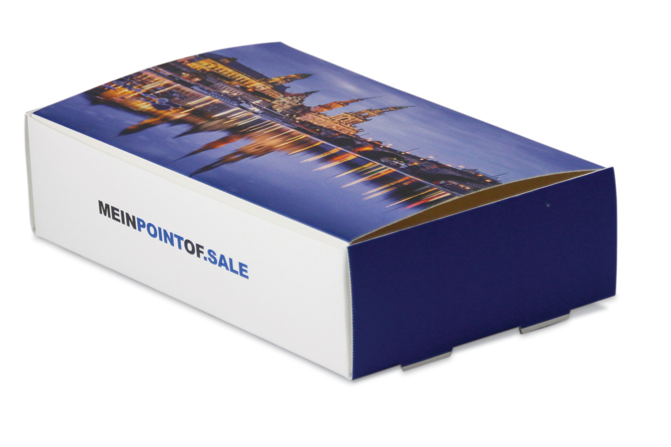 Die perfekte Art, sein Produkt aufmerksamkeitsstark zu präsentieren. Die Konstruktion ist eine Selbstaufrichte-Box.