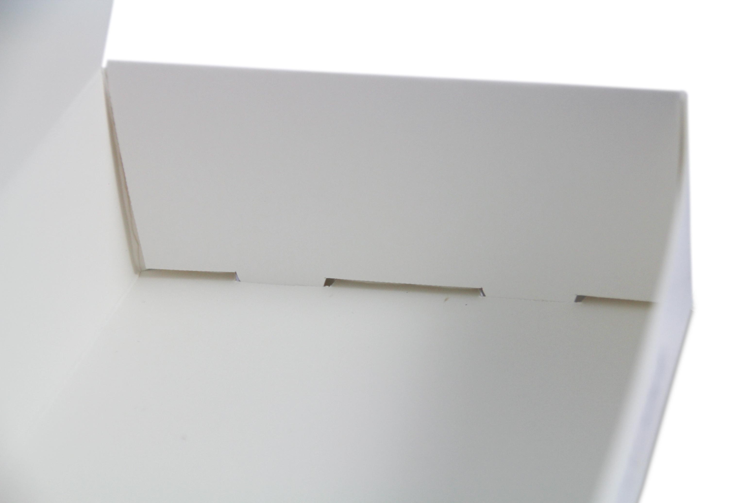 Die Konstruktion ist eine Selbstaufrichte-Box. Die Seitenlaschen werden eingeschlagen und halten die Verpackung in ihrer Form. Der Deckel wird vorne eingesteckt.