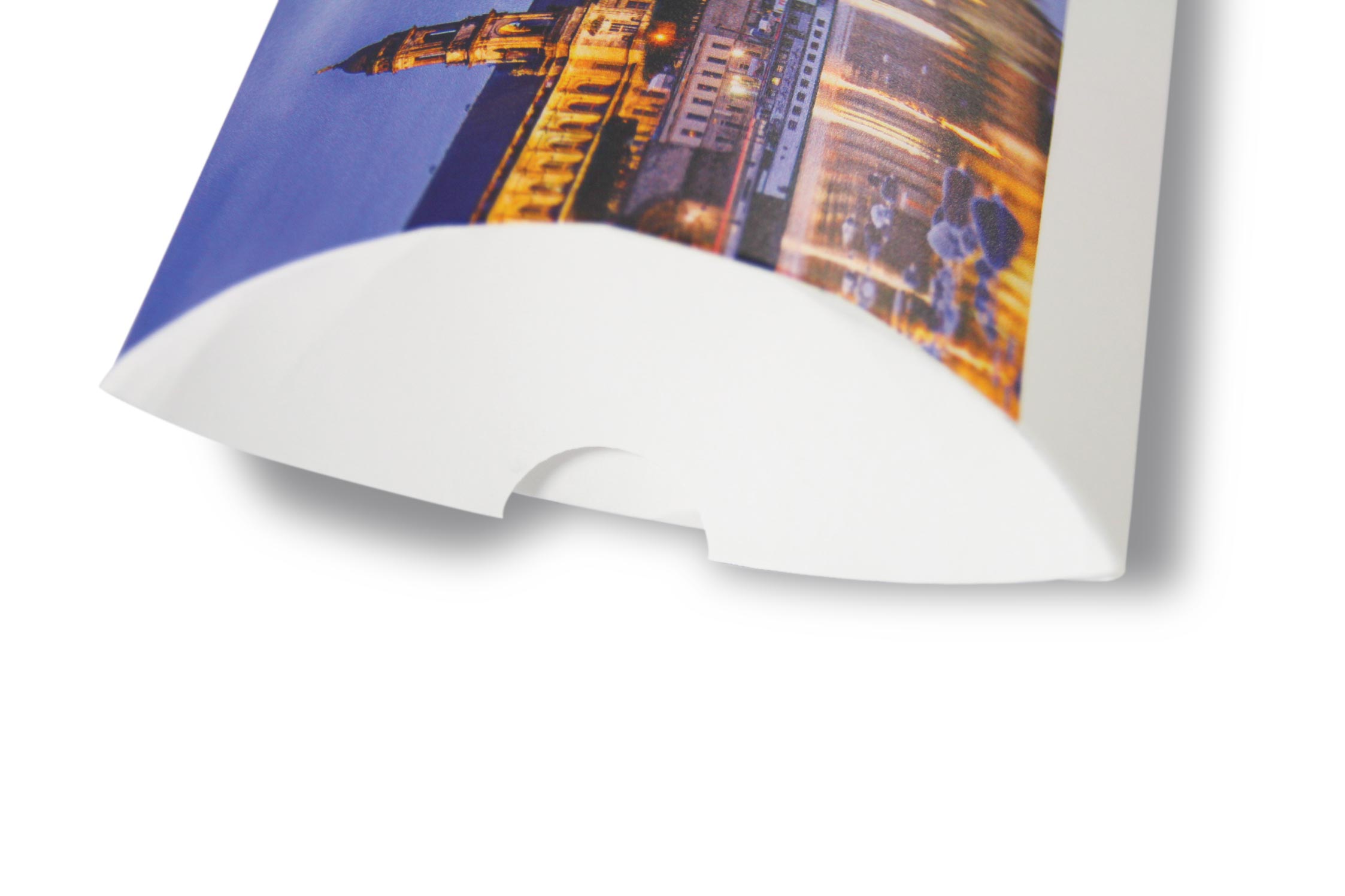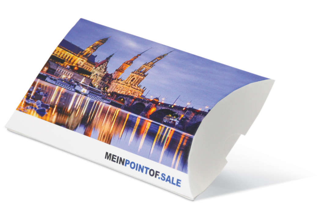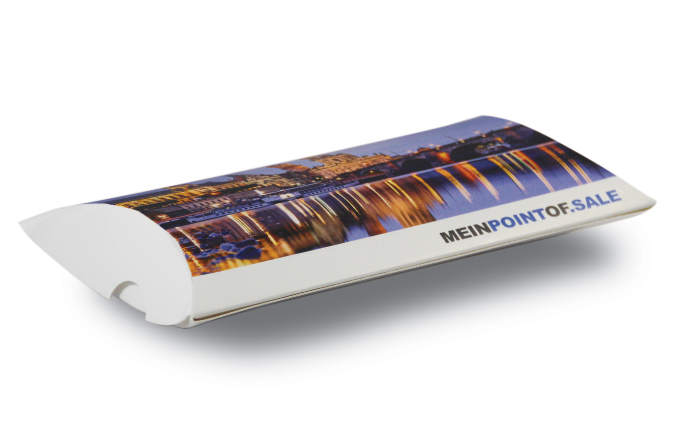 Eine eindrucksstarke Umverpackung für Ihr Produkt, besonders für flache Inhalte, wie z.B. Textilien, sehr gut geeignet. Diese Konstruktion wird seitlich durch zwei übereinanderliegende Laschen verschlossen. Wir produzieren die Luftkissenverpackung in Ihrer gewünschten Größe und mit Ihrem individuellen Druckbild.