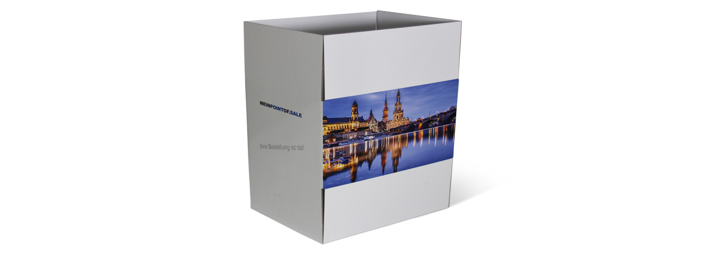 Die Versandverpackung können Sie in jeder beliebigen Größe und mit Ihrem individuellen Druckbild bestellen. Geben Sie lediglich die Breite, Tiefe und Höhe ein. Es handelt sich um eine klassische Versandverpackung. Die beiden Innenklappen werden eingefalzt, die beiden äußeren Klappen verschließen die Verpackung. Sie brauchen diese nur noch mit Paketband verschließen. Die Verpackung ist sehr gut für den postalischen Versand geeignet. Die braune EB Welle ist mit 4,4mm sehr stabil und wird nicht bedruckt. Alternativ bietet sich die ebenfalls noch sehr stabile weiße EE-Welle mit 3,3mm Dicke an, die 4/0 farbig bedruckt werden kann.