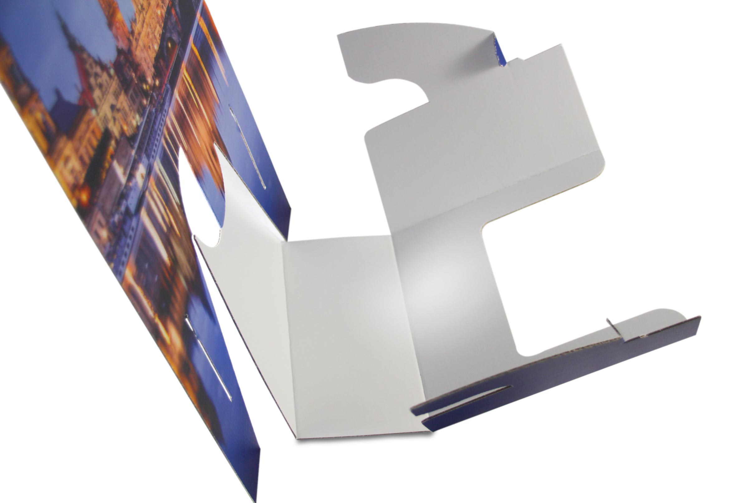 Unsere hausinterne Konfektion falzt, verklebt und verpackt qualitätsorientiert und automatisch passend zu Ihrem Produkt. Ihr Flyer-Aufsteller wird flachliegend verpackt.