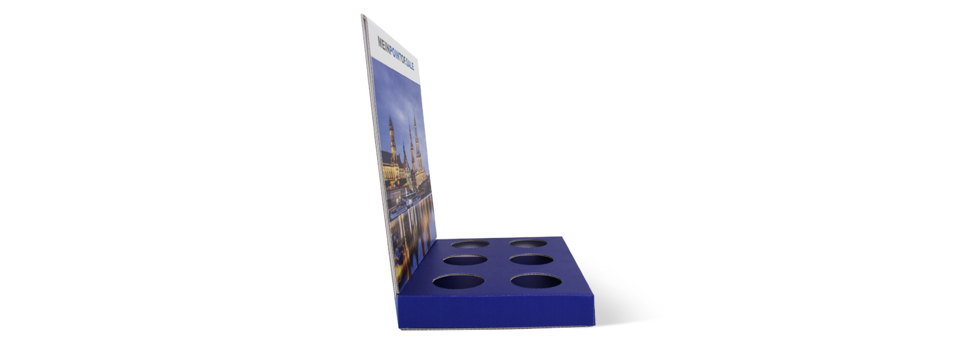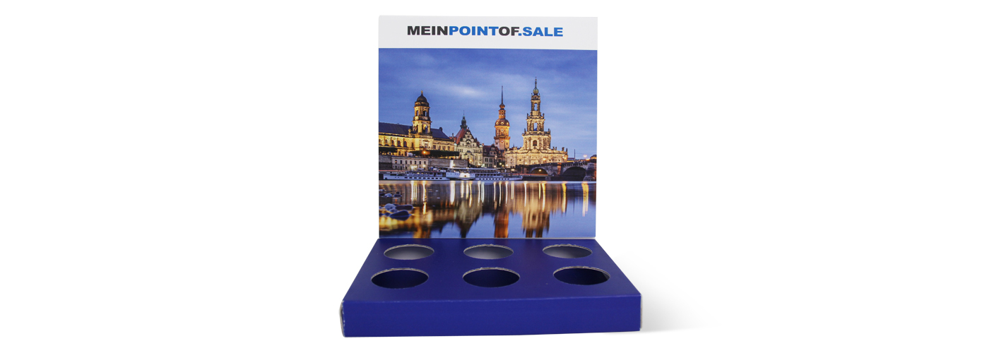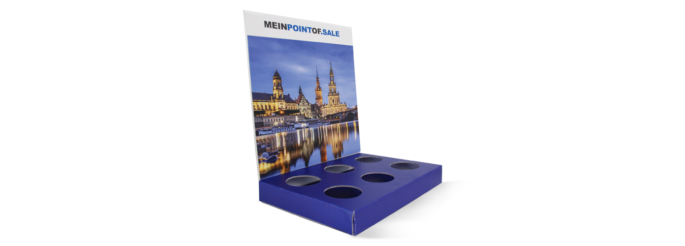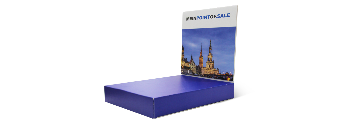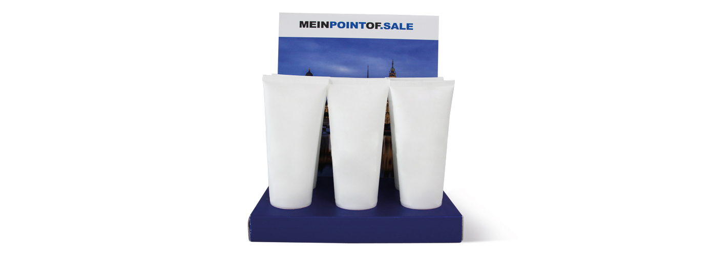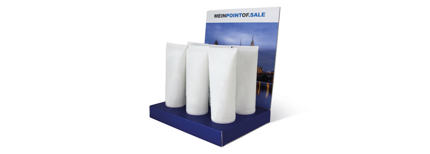 Alle Wege führen Ihre Kunden an die Theke. Und ob Sie dort kassieren und/oder beraten: mit dem Thekendisplay-Präsenter wecken Sie auf jeden Fall das Kundeninteresse. Unser individuell gestaltbarer Verkaufshelfer unterstützt Sie bei der Präsentation von z. B. Tuben, Dosen oder Schachteln. Kostenfreie Stanzungen nach Ihren Vorgaben sorgen für einen sicheren Stand der Produkte und eine übersichtliche Präsentation. Für ein professionelles Gesamtbild sorgt zudem die gestaltbare Bodenplatte und eine Rundum-Bedruckung, sodass keine weißen Blitzer entstehen.